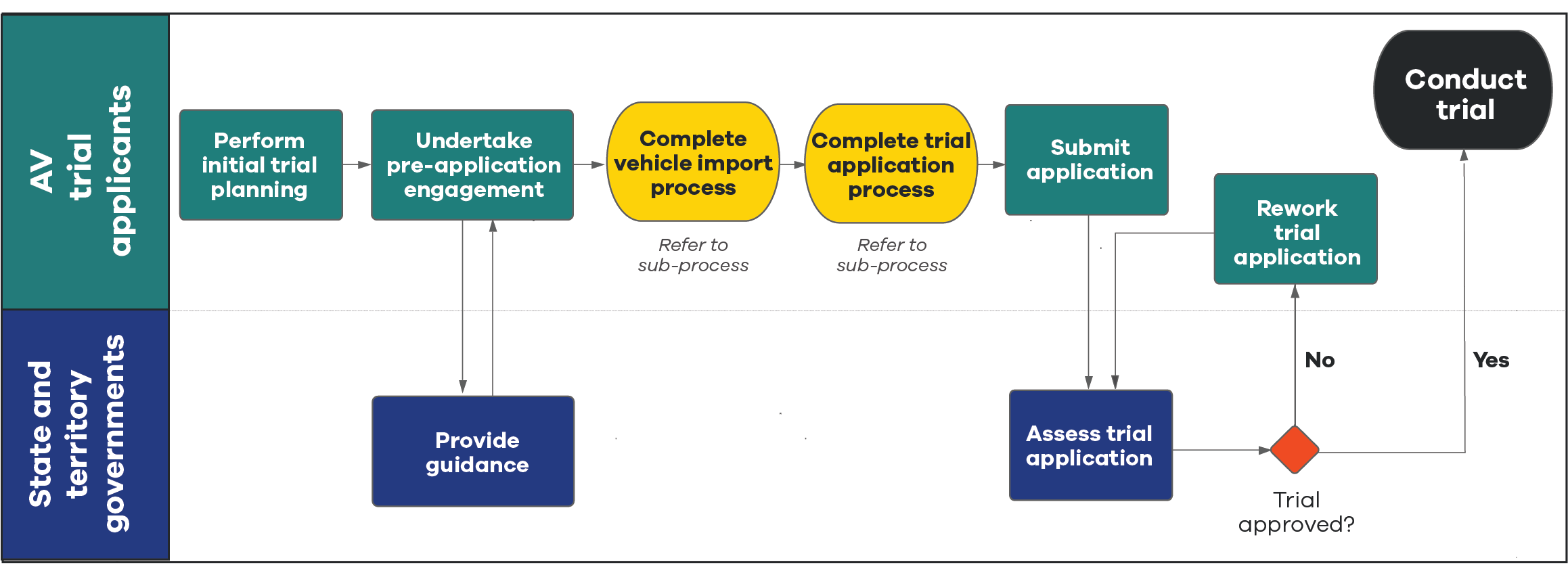 State and territory requirements and the AV trial guidelines should inform your application. Note: If you’re applying for a trial in Victoria, also refer to the Victorian trial guidelines.